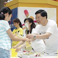 高雄市は、市長が全職員に1日分の給料を寄付するよう呼び掛けるなど被災者支援に熱心。このイベントのためにバナナとアンスリウムを約2000セット用意した。陳啓イク副市長は、「2年前の台風被災の際の日本からの支援に感謝している。復興の道は長いが、アンスリウムの花言葉である『情熱と思いやり』を被災者の皆さんに届けたい」と話していた。