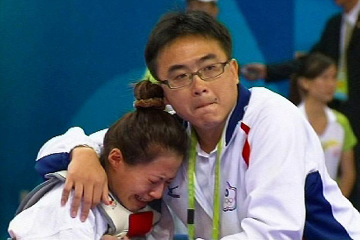 競技開始後、台湾人選手圧倒的優位の最中、韓国人役員が不正ニダ!と異議。